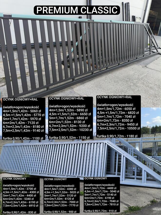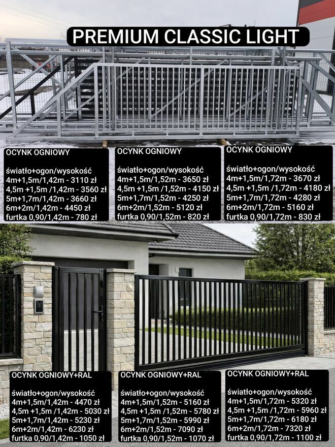 Brama przesuwna 4m PREMIUM CLASSIC LIGHT, ocynk ogniowy+RAL