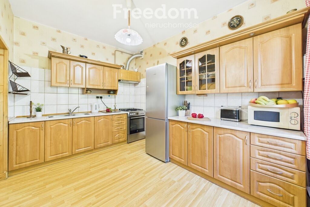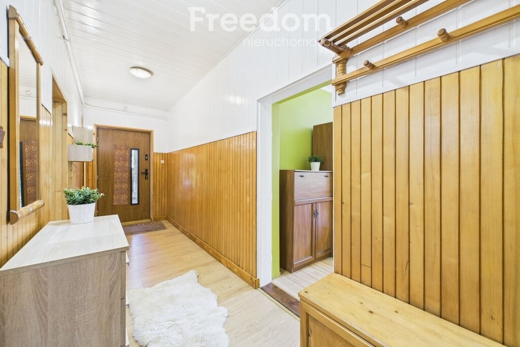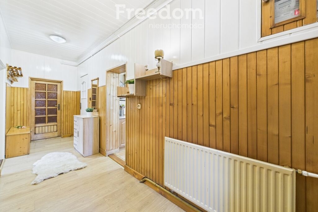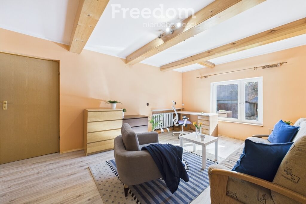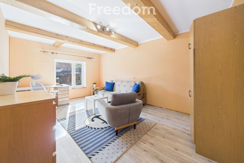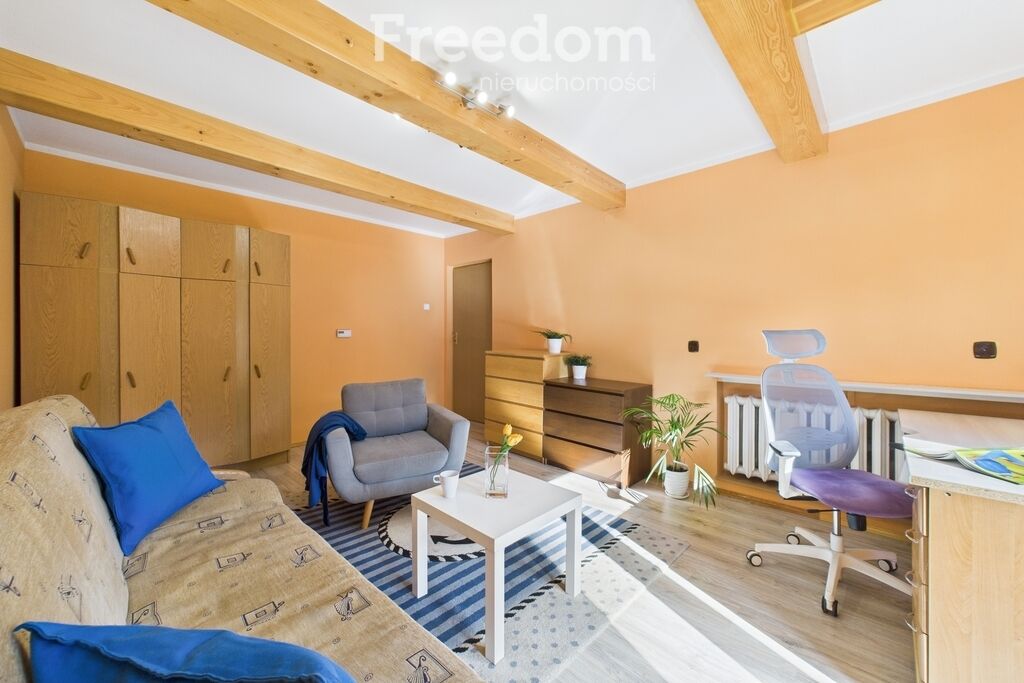 do piwnicy (14.4m²). Częściowo drewniane podłogi nadają wnętrzu