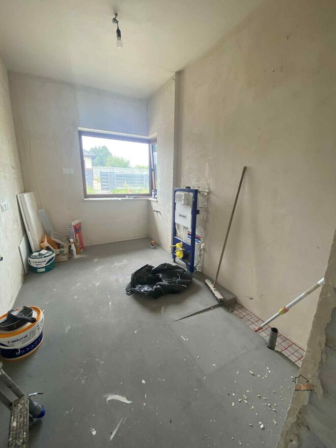 Do sprzedania nowoczesny, parterowy dom, wybudowany w tym roku na działce o powierzchni 10 arów. Dojazd do nieruchomości drogą gminną, asfaltową. Budynek murowany z pustaka- termalika, ocieplony i wytynkowany, w najbliższych dniach zostanie oddany do użytkowania. Powierzchnia użytkowa domu to 80 mkw. Rozkład pomieszczeń: wiatrołap, kotłownia z osobną WC wypłytkowana, zamontowany piec firmy Saunier Duval oraz zbiornik na ciepłą wodę, salon z aneksem kuchennym, z wyjściem na obszerny taras 12x4m, 3 sypialnie i łazienka. Na działce znajduje się również murowany garaż o powierzchni 50 mkw na dwa auta, od tyłu wejście do pomieszczeń gospodarczych, które zostały już wypłytkowane. Okna w domu zamontowano 3 szybowe oraz rolety zewnętrzne. Media: prąd, gaz, kanalizacja, woda. Działka w całości ogrodzona. Do centrum Wadowic ok 8 km. ....................................................................................................................................................................................................................... Przed prezentacją nieruchomości zawierana jest umowa pośrednictwa. Zakup lub wynajem nieruchomości za pośrednictwem naszego biura wiąże się z koniecznością zapłaty prowizji. ....................................................................................................................................................................................................................... W naszym biurze pomożemy Państwu przeprowadzić całą procedurę kredytową. Współpracujemy z niezależnymi doradcami kredytowymi, którzy pomogą wybrać najlepszy kredyt z najniższą marżą. ..........................................................................................................................................................................................................................Numer licencji pośrednika odpowiedzialnego za ofertę: 14941