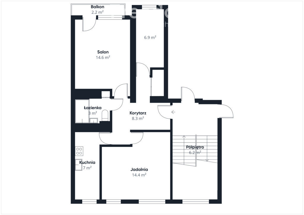 balkonem (14m2) oraz obok kolejny pokój ( 7m2) to idealna przestrzeń