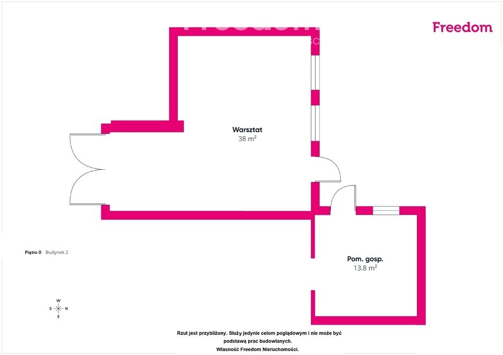 mieszczący warsztat (38m2) oraz pomieszczenie gospodarcze (13.8m2),