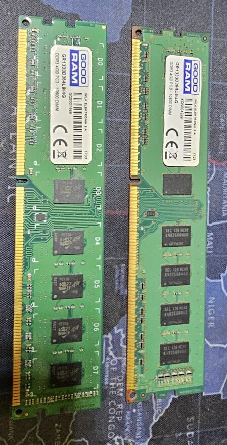 Sprzedam 2x pamięć goodram 4gb 1333 mhz 10600 dimmSprawna pamięć wyjęta z starego komputera i sprzedaję z niego części zapraszam na inne aukcje.