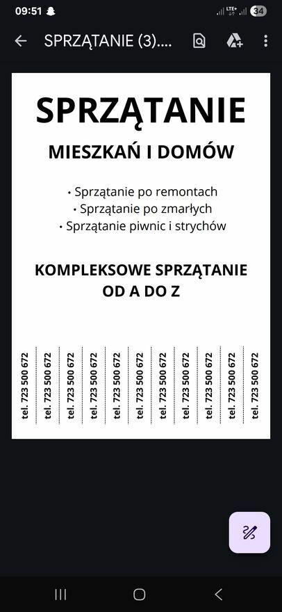 Witam prowadzimy kompleksowe sprzątanie mieszkań, domów, piwnic, strychów, ogrodów. Po remontach po zmarłych. Kompleksowe Sprzątanie od A do Z.Pomoc przy przeprowadzce, pakowanie rzeczy osobistych itd.