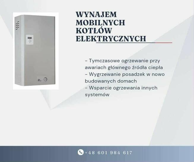 Wynajem elektrycznych kotłów CO. Wygrzewanie posadzek, zastępcze źródło ciepła w przypadku awarii. Kontakt cały tydzień.